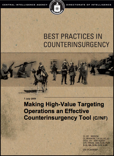 2009ம் ஆண்டு ஜுலை மாதம் 7ம் நாள் இடப்பட்டுள்ள 21 பக்கங்களைக் கொண்ட இந்த அறிக்கை, அமெரிக்காவின் மத்திய புலனாய்வு அமைப்பான சிஐஏயின்,நாடுகடந்த விவகாரங்களுக்கான பிரிவினால் ‘கிளர்ச்சி முறியடிப்பில் மிகச்சிறந்த நடைமுறைகள்’ என்ற தலைப்பில் வெளியிடப்பட்டிருக்கிறது.