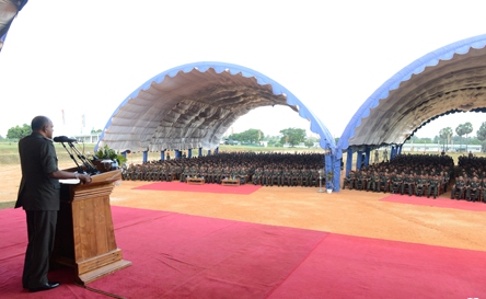 அதிலிருந்து நாட்டைப் பாதுகாக்க வேண்டியது படையினரின் பொறுப்பு என்று குறிப்பிட்ட அவர், சிறிலங்கா அதிபர் மகிந்த ராஜபக்ச மற்றும் கோத்தபாய ராஜபக்ச ஆகியோரினால் படையினருக்கு மேற்கொள்ளப்பட்ட சிறப்பு சலுகைகள், வசதிகள் குறித்தும் எடுத்துக் கூறியிருந்தார்.