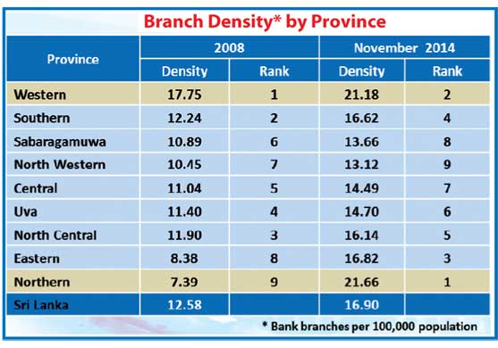 மேல் மாகாணத்தை விடவும், வடக்கு மாகாணத்திலேயே வங்கிக் கிளைகளின் அடர்த்தி அதிகமாக உள்ளதை இந்தப் புள்ளிவிபரம் உறுதி செய்கிறது.