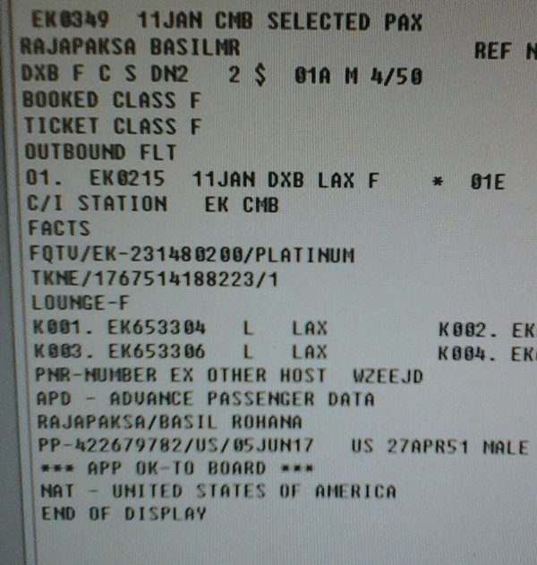 அதேவேளை, பசில் ராஜபக்ச வரும் பெப்ரவரி, 20ம் நாள் லொஸ் ஏஞ்சல்ஸ் விமான நிலையத்தில் இருந்து புறப்பட்டு, 22ம் நாள் கொழும்பு வரும் வகையில், விமானப்பயணச்சீட்டு பெற்றுள்ளதாகவும் தெரியவந்துள்ளது.