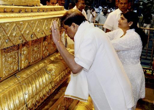 கடைசியில் தங்கக் கதவின் பூட்டை உடைத்து சிறிலங்கா அதிபரை வழிபாடு நடத்த அதிகாரிகள் ஏற்பாடு செய்தனர்.