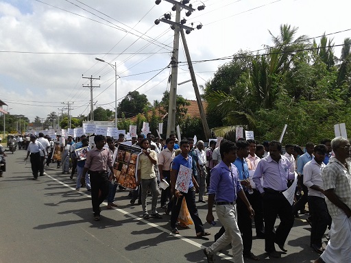 யாழ்.பல்லைக்கழக ஆசிரியர் சங்கத் தலைவர், அ. இராசகுமாரன், மன்னார் ஆயர் இராயப்பு யோசெப் ஆண்டகை உள்ளிட்டோர் முன்னிலை வகிக்க இந்தப் பேரணி, இடம்பெற்று வருகிறது.