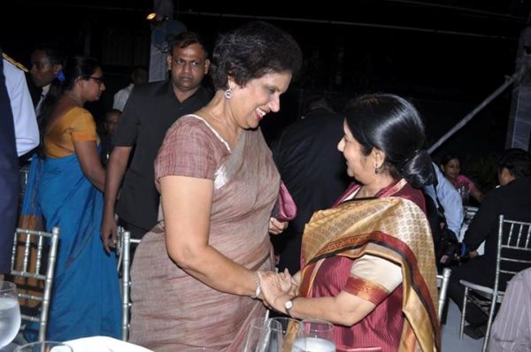 சுஸ்மாவுக்கு இராப்போசன விருந்தளித்தார் மங்கள – சம்பந்தன், சந்திரிகாவும் பங்கேற்பு