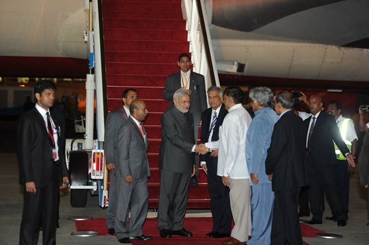இந்தியப் பிரதமர் நரேந்திர மோடி இரண்டு நாள் அரசுமுறைப் பயணமாக, இன்று அதிகாலை 5.30 மணியளவில் சிறிலங்கா வந்தடைந்தார். சிறப்பு விமானம் மூலம், கட்டுநாயக்க விமான நிலையத்தை வந்தடைந்த இந்தியப் பிரதமரை, சிறிலங்கா பிரதமர் ரணில் விக்கிரமசிங்க நேரில் சென்று வரவேற்றார்.