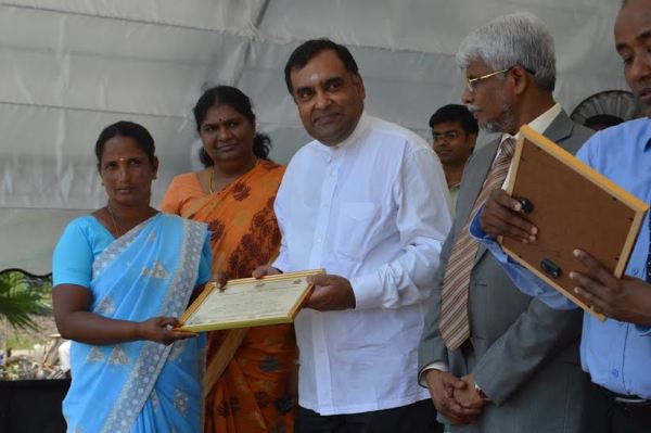 சிறிலங்காவுக்கான இந்தியத் தூதுவர் வை.கே.சின்கா, வீடுகளையும் அதற்குரிய ஆவணங்களையும் பயனாளிகளிடம் கையளித்தார்.