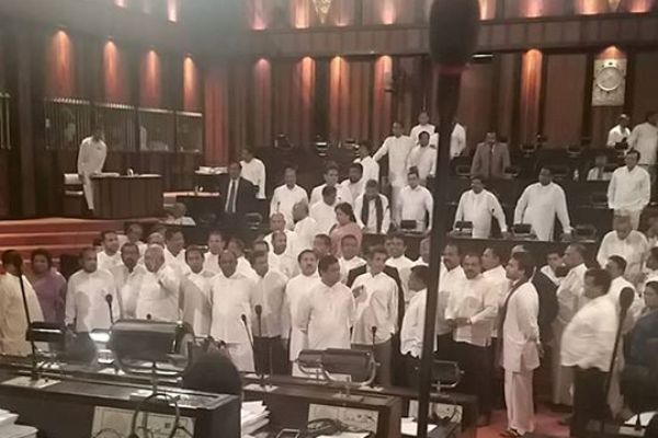 இலஞ்ச ஊழல் ஒழிப்பு ஆணைக்குழுவின் விசாரணையில் இருந்து சிறிலங்காவின் முன்னாள் ஆட்சியாளர் மகிந்த ராஜபக்சவைக் காப்பாற்றுவதற்காக, அவரது ஆதரவாளர்களான ஐக்கிய மக்கள் சுதந்திர முன்னணியின் சுமார் 56 நாடாளுமன்ற உறுப்பினர்கள், இரவிரவாக நாடாளுமன்றத்துக்குள் போராட்டம் நடத்தினர்.