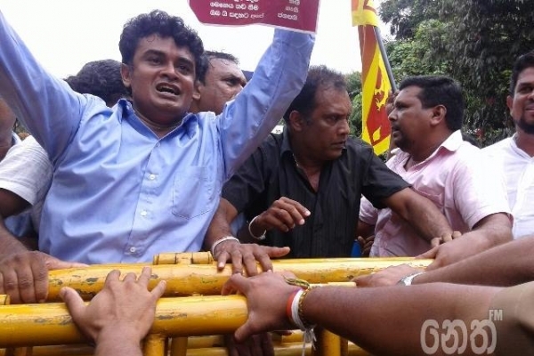 சிறிலங்காவின் முன்னாள் ஆட்சியாளர் மகிந்த ராஜபக்சவை, இலஞ்ச ஊழல் ஒழிப்பு ஆணைக்குழு விசாரணைக்கு அழைத்துள்ளமைக்கு எதிர்ப்புத் தெரிவித்தும், அவருக்கு ஆதரவு தெரிவித்தும், சிறிலங்கா நாடாளுமன்ற வளாகப் பகுதியி்ல் பெரியளவிலான எதிர்ப்புப் போராட்டம் ஒன்று இடம்பெற்று வருகிறது.