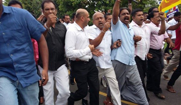 மாகாணசபை மற்றும், உள்ளூராட்சி சபைகளின் உறுப்பி்னர்களால் அழைத்து வரப்பட்ட மகிந்த ராஜபக்சவின் ஆதரவாளர்கள் இன்று காலை 9 மணியளவில் நாடாளுமன்ற வீதியை மறித்து போராட்டத்தில் ஈடுபட்டுள்ளனர்.