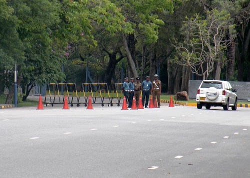 அதேவேளை விமான நிலைய வீதிகளில் தடுப்புகளுடன் சிறிலங்கா காவல்துறையினர் தயார் நிலையில் வைக்கப்பட்டுள்ளனர்.