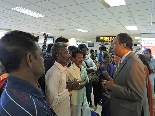 கட்டுநாயக்க விமான நிலையத்தை வந்தடைந்த அகதிகளை மீள்குடியேற்ற அமைச்சர் சுவாமிநாதன் வரவேற்று, அவர்களுக்கான உதவிகளை வழங்கினார்.