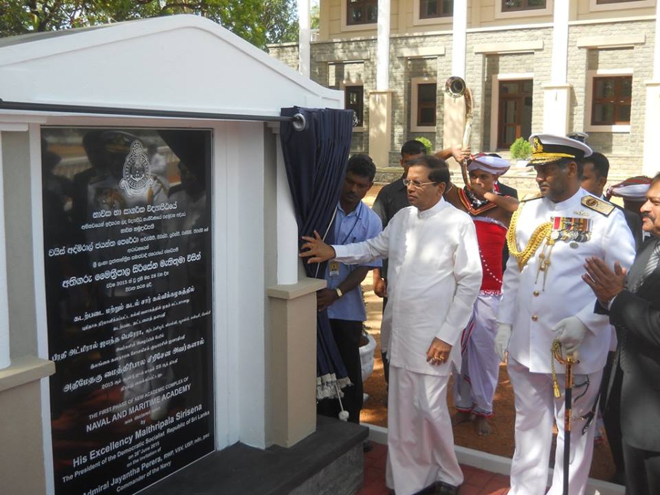 நேற்று நடந்த நிகழ்வில் கடற்படைப் பயிற்சிக் கல்லூரியில் புதிதாக அமைக்கப்பட்ட கட்டடத் தொகுதியை மைத்திரிபால சிறிசேன திறந்து வைத்தார்.
