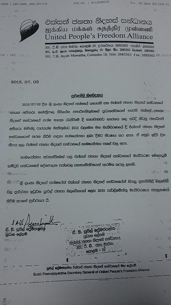 சற்று முன்னர் இதுதொடர்பான அறிக்கை ஒன்றை சுசில் பிரேம் ஜெயந்த வெளியிட்டுள்ளார்.