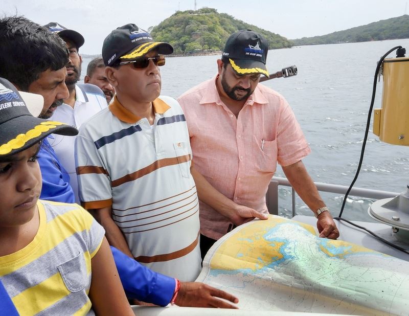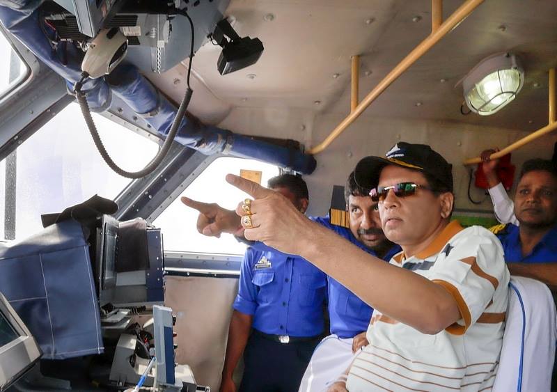 அத்துடன் சிறிலங்கா கடற்படையின் அதிவேக தாக்குதல் படகு (டோறா) மூலம் துறைமுகப்பகுதியையும் மைத்திரிபால சிறிசேன சுற்றிப் பார்வையிட்டுள்ளார்.