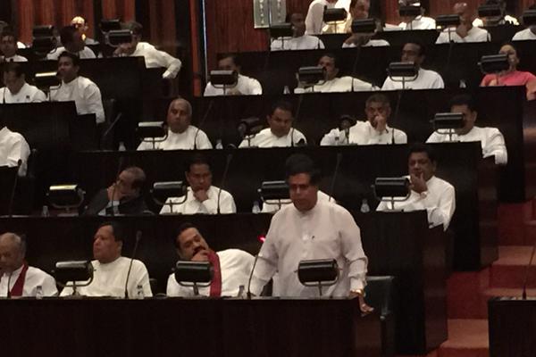 இன்று நாடாளுமன்ற அமர்வுகள் 9.30 மணிக்கு ஆரம்பமாகின. அதற்கு முன்னதாக, காலை 9.25 மணியளவிலேயே நாடாளுமன்றத்துக்கு வந்த மகிந்த ராஜபக்ச, முன்வரிசையில் இரண்டாவது ஆசனத்தில் அமர்ந்து கொண்டார்.