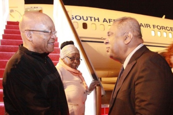 தென்னாபிரிக்க அதிபர் சூமாவை கட்டுநாயக்கவில் சந்தித்துப் பேசினார் மங்கள சமரவீர