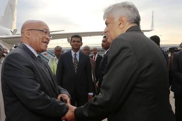 தென்னாபிரிக்க அதிபர் ஜேக்கப் சூமாவுடன், சிறிலங்கா பிரதமர் ரணில் விக்கிரமசிங்க பேச்சுக்களை நடத்தியிருக்கிறார். கட்டுநாயக்க விமான நிலையத்தில் இந்தப் பேச்சுக்கள் இடம்பெற்றன.