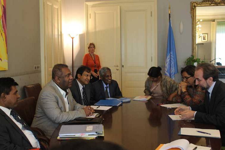 ஐ.நா மனித உரிமை ஆணையாளர் செயிட் ராட் அல் ஹுசேனை, சிறிலங்கா வெளிவிவகார அமைச்சர் மங்கள சமரவீர தலைமையிலான குழுவினர் நேற்று சந்தித்துப் பேச்சு நடத்தியுள்ளனர்.