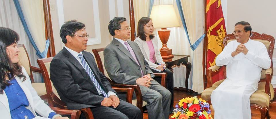 MS-chinese delegates (1)சீனா அவசரமாக அனுப்பி வைத்துள்ள சிறப்புத் தூதுவர் நேற்று மாலை சிறிலங்கா அதிபர் மைத்திரிபால சிறிசேனவைச் சந்தித்துப் பேச்சு நடத்தியுள்ளார்.