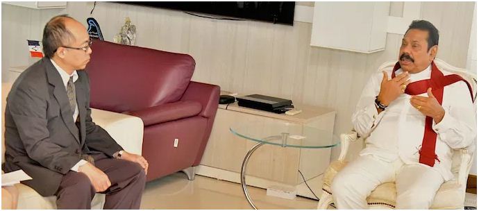 நீண்டநேரம் நடந்த இந்தச் சந்திப்பில், சிறிலங்காவின் முன்னாள் வெளிவிவகார அமைச்சர் ஜி.எல்.பீரிசும் கலந்து கொண்டார்.mahinda-motoo noguchi