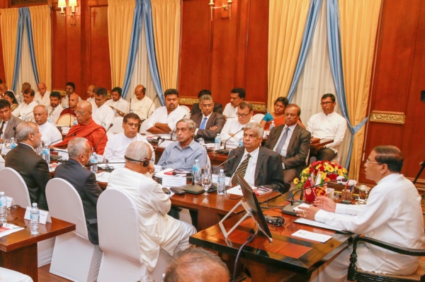 ஜெனிவா தீர்மானம் குறித்து ஆராய்வதற்காக நேற்று நடத்தப்பட்ட அனைத்துக் கட்சிக் கூட்டத்தில், இந்த தீர்மானத்தை நடைமுறைப்படுத்துவதற்கான யோசனைகளைச் சமர்ப்பிக்குமாறு சிறிலங்கா அதிபர் மைத்திரிபால சிறிசேன வேண்டுகோள் விடுத்துள்ளார்.