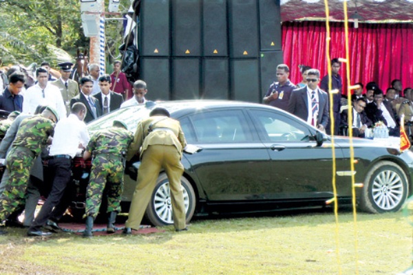சேற்றில் சிக்கினார் சிறிலங்கா அதிபர் மைத்திரி