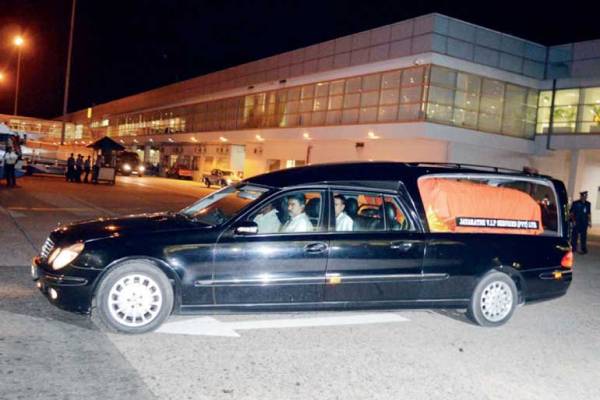 சிங்கப்பூரில் இருந்து சிறிலங்கன் எயர்லைன்ஸ் விமானத்தில் நேற்றிரவு 9.15 மணியளவில் கட்டுநாயக்க விமான நிலையத்துக்கு கொண்டு வரப்பட்ட அவரது உடல் இன்று அஞ்சலிக்காக வைக்கப்படவுள்ளது.
