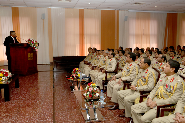 இதையடுத்து, மேஜர் ஜெனரல், பிரிகேடியர் பதவி நிலைகளில் உள்ள சிறிலங்கா இராணுவ அதிகாரிகள் 200 பேர் மத்தியில் சிறிலங்கா பாதுகாப்புச் செயலர் உரையாற்றினார்.