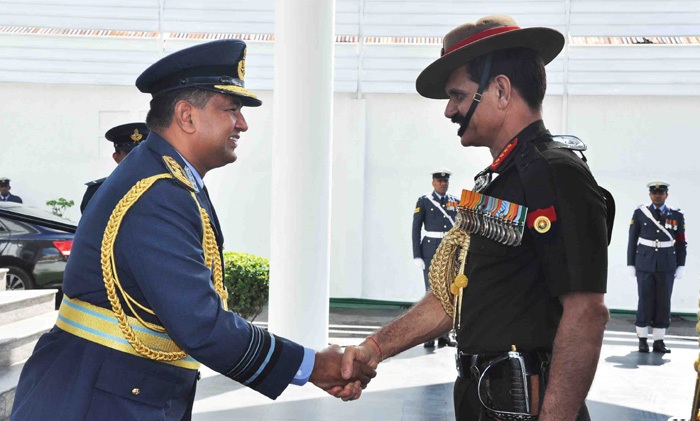 இன்று காலையில் சிறிலங்காவின் கூட்டுப் படைகளின் தலைமையகத்தில், கூட்டுப் படைத் தளபதி எயர் சீவ் மார்ஷல் கோலித குணதிலகவையும், சிறிலங்கா விமானப்படைத் தலைமையகத்தில் விமானப்படைத் தளபதி எயர் மார்ஷல் ககன் புலத்சிங்களவையும் இந்திய இராணுவத் தளபதி சந்தித்துப் பேச்சு நடத்தியிருந்தார்.