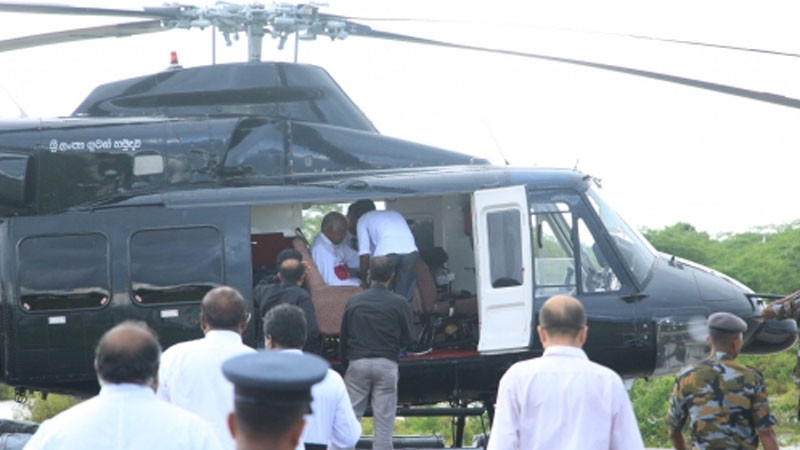 அங்கிருந்து அவர் சிறிலங்கா விமானப்படை உலங்குவானூர்தி மூலம் மன்னார், தள்ளாடி இராணுவத் தளத்துக்கு அழைத்து வரப்பட்டார்.