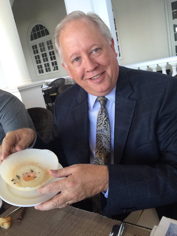 சிறிலங்காவுக்குப் பயணம் மேற்கொண்டுள்ள அமெரிக்க இராஜாங்கத் திணைக்களத்தின் அரசியல் விவகாரங்களுக்கான அடிநிலைச் செயலராகப் பொறுப்பேற்கவுள்ள தூதுவர் தோமஸ் சானொன் இன்று காலை உணவாக அப்பத்தை சாப்பிட்டார்.