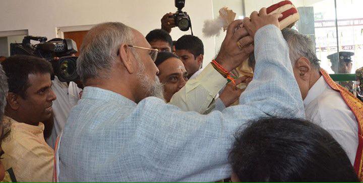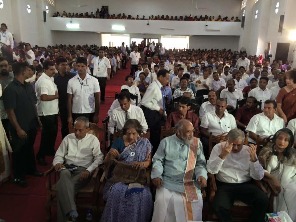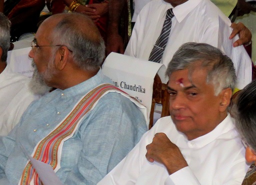 இந்த நிகழ்வுக்கு வந்த பிரதமர் ரணில் விக்கிரமசிங்கவை, வீரசிங்கம் மண்டபத்தின் வாயிலில் கைலாகு கொடுத்த முதலமைச்சர் சி.வி.விக்னேஸ்வரன், சிறிலங்கா பிரதமருக்கு பொன்னாடை போர்த்தி,  தலைப்பாகை சூடி வரவேற்றார்.