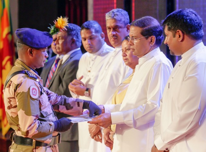அலரி மாளிகையில் நேற்று, போரினால் பாதிக்கப்பட்ட, உடல்உறுப்புகளை இழந்த படையினர் மற்றும் உயிரிழந்த படையினரின் குடும்பத்தினருக்கு ‘விருசர’ என்ற சிறப்புரிமை அட்டை வழங்கும் நிகழ்வில், கலந்து கொண்டு உரையாற்றிய சிறிலங்கா அதிபர்-
