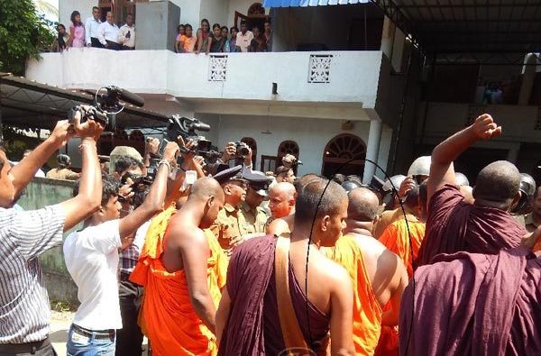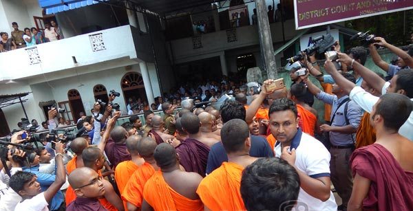 பொதுபல சேனாவைச் சேர்ந்த பிக்குகளும் ஆதரவாளர்களும், நீதிமன்றத்துக்கு வெளியே ஆர்ப்பாட்டம் செய்ததுடன், நீதிமன்றத்துக்குள் அத்துமீறி நுழைய முயன்றனர். எனினும் காவல்துறையினர் அவர்களைத் தடுத்து நிறுத்தினர்.