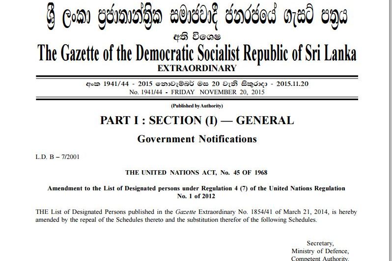 ltte-ban-gazetteபாரிய நிதி மோசடிகள் தொடர்பாக விசாரணைகளை மேற்கொள்ளும், அதிபர் ஆணைக்குழுவுக்கான அதிகாரங்கள் அதிகரிக்கப்பட்டுள்ளன. இதற்கான வர்த்தமானி அறிவிப்பை சிறிலங்கா அதிபர் மைத்திரிபால சிறிசேன கடந்த முதலாம் நாள் வெளியிட்டுள்ளார்.
