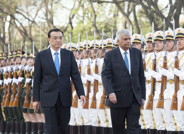 சீனாவுக்குப் பயணம் மேற்கொண்டுள்ள சிறிலங்கா பிரதமர் ரணில் விக்கிரமசிங்க நேற்று சீனப் பிரதமர் லி கெகியாங்கைச் சந்தித்துப் பேச்சு நடத்தினார்.