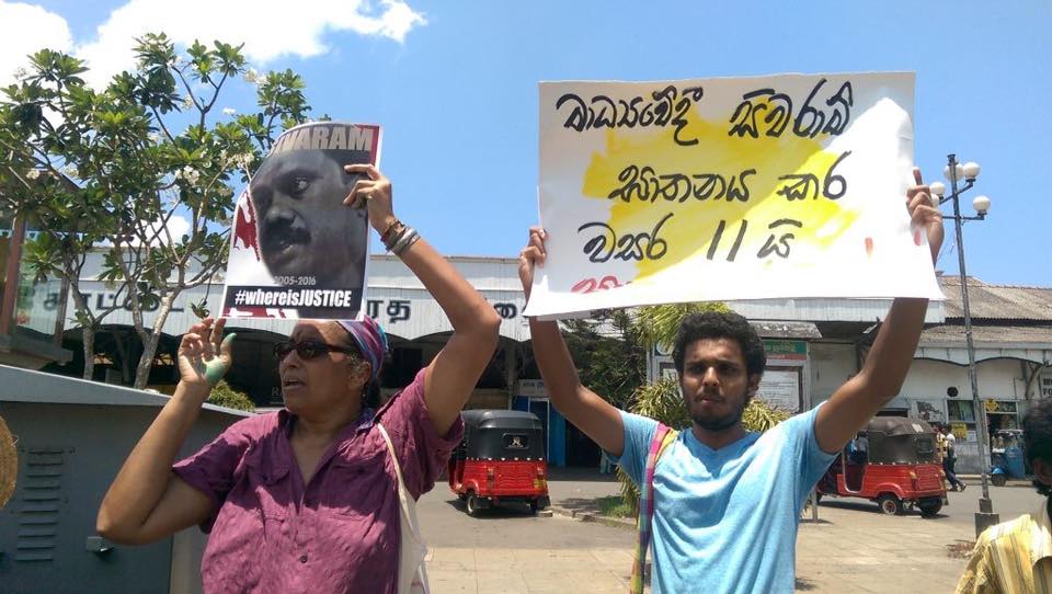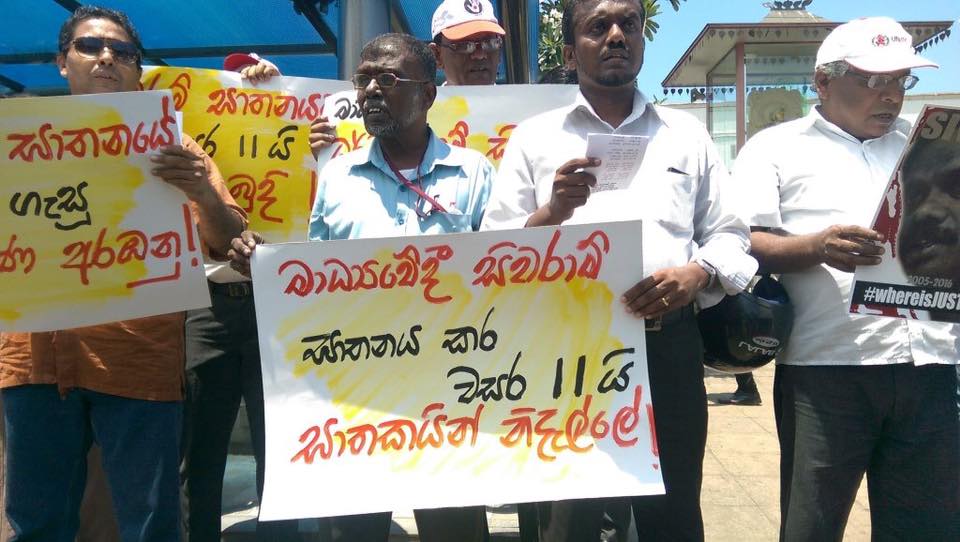 கோட்டே தொடருந்து நிலையத்துக்கு முன்பாக நேற்றுக்காலை திரண்ட பல்வேறு ஊடக அமைப்புக்களைச் சேர்ந்தவர்களும், ஊடகவியலாளர்களும், நீதி வழங்கக் கோரும் பதாதைகளுடன் ஆர்ப்பாட்டத்தில் ஈடுபட்டனர்.