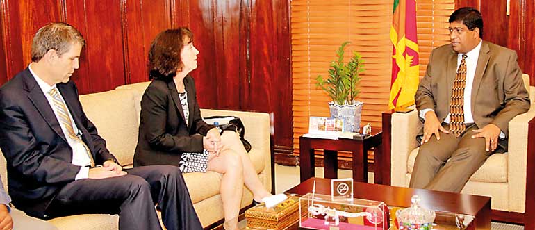 USA-SriLanka-Flagஅமெரிக்க திறைசேரி அதிகாரிகள் குழுவொன்று சிறிலங்காவுக்குப் பயணம் மேற்கொண்டு, சிறிலங்கா நிதி அமைச்சர் ரவி கருணாநாயக்கவைச் சந்தித்துப் பேச்சு நடத்தியுள்ளது.