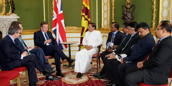 சிறிலங்கா அதிபர் மைத்திரிபால சிறிசேன, நேற்று பிரித்தானியப் பிரதமர் டேவிட் கமரூனைச் சந்தித்துப் பேச்சுக்களை நடத்தியுள்ளார்.