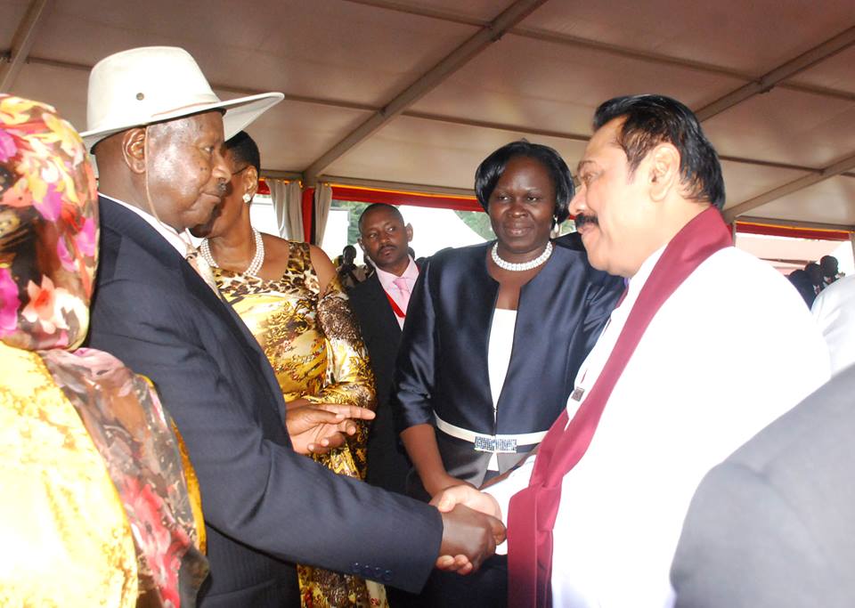 கடந்த வியாழக்கிழமை கம்பாலாவில் பதற்றத்துக்கு நடுவே இடம்பெற்ற, யொவேரி முசவேனியின் ஆறாவது பதவியேற்பு நிகழ்வில்,  மகிந்த ராஜபக்ச கலந்து கொண்டிருந்தார்.  அங்குள்ள நீதிமன்றங்கள், எதிர்ப்பு பேரணிகளை நடத்த தடை விதித்திருந்தன. சிம்பாப்வேயின் அதிபர் ரோபர்ட் முகாபே, தன்சானியாவின் அதிபர் ஜோன் மகுபுலி, தென்னாபிரிக்க அதிபர் ஜேக்கப் சூமா, சம்பியாவின் அதிபர் கட்கர் லுங்கு ஆகியோருடன், மகிந்த ராஜபக்சவும் இந்த பதவியேற்பு விழாவில் பங்கேற்றிருந்தார்.