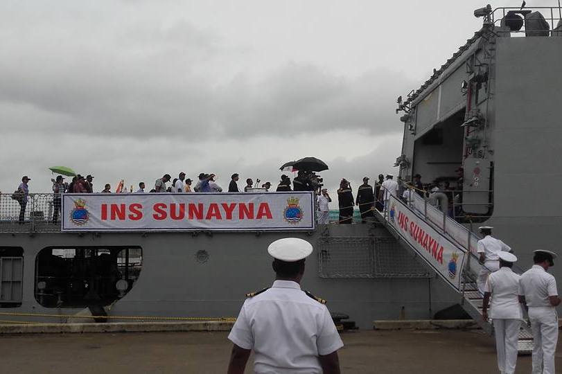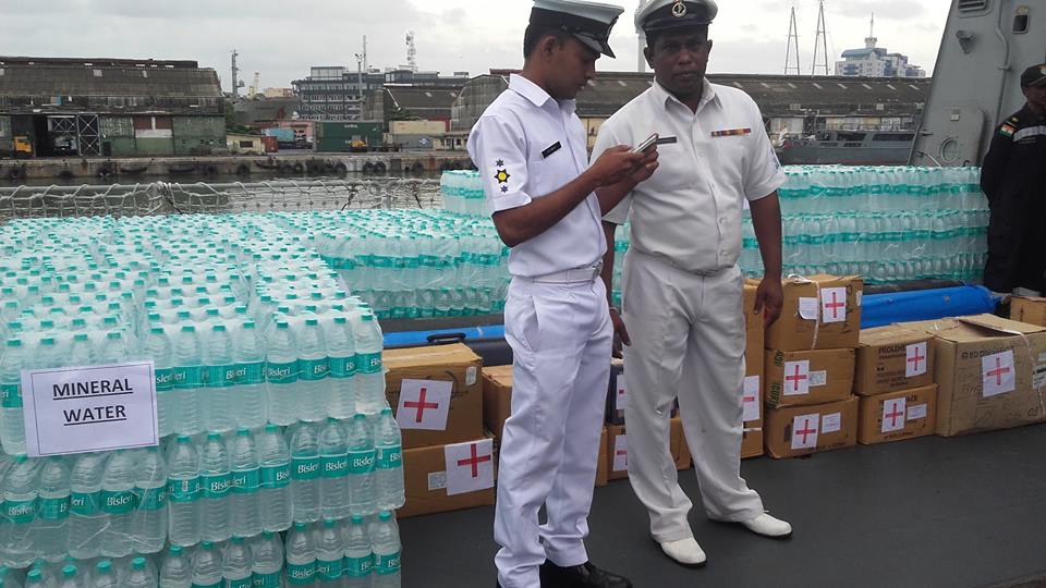 ஐஎன்எஸ் சுனைனா என்ற போர்க்கப்பலில், 25 மெட்ரிக் தொன் உதவிப் பொருட்கள் எடுத்து வரப்பட்டுள்ளன.