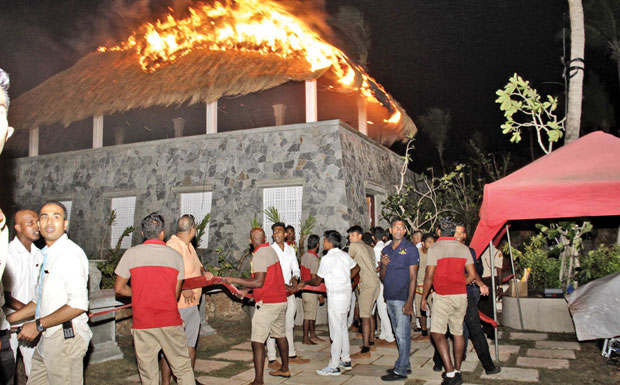 சிறிலங்கா அதிபர் பங்கேற்ற நட்சத்திர விடுதி திறப்பு விழாவில் தீவிபத்து