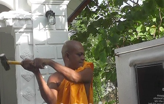 மட்டக்களப்பு மங்களராமய விகாரைக்கு வர மறுத்த சிறிலங்கா அதிபர் மைத்திரிபால சிறிசேன மீது கொண்ட கோபத்தினால், அந்த விகாரையில் இருந்த சிறிலங்கா அதிபரின் பெயர் பொறித்த நினைவுக் கல்லை அடித்து நொருக்கி ஆத்திரத்தை தீர்த்துக் கொண்டார் விகாராதிபதி.