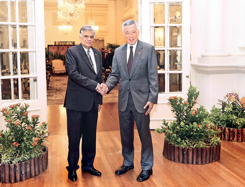 மூன்று நாள் பயணமாக சிங்கப்பூர் சென்றுள்ள சிறிலங்கா பிரதமர் ரணில் விக்கிரமசிங்க, நேற்று சிங்கப்பூர் அதிபர் மற்றும் பிரதமரைச் சந்தித்துப் பேச்சுக்களை நடத்தினார்.