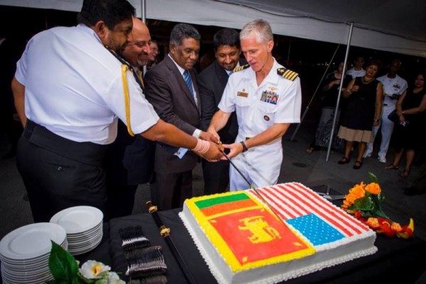 கொழும்புத் துறைமுகத்துக்கு வந்துள்ள அமெரிக்கக் கடற்படையின் ஈரூடக போக்குவரத்துத் தள போர்க்கப்பலான, யுஎஸ்எஸ். நியூ ஓர்லியன்சில் நேற்று மாலை இடம்பெற்ற வரவேற்பு நிகழ்வில், சிறிலங்கா அமைச்சர்கள் மற்றும் பாதுகாப்பு அதிகாரிகள் பங்கேற்றனர்.