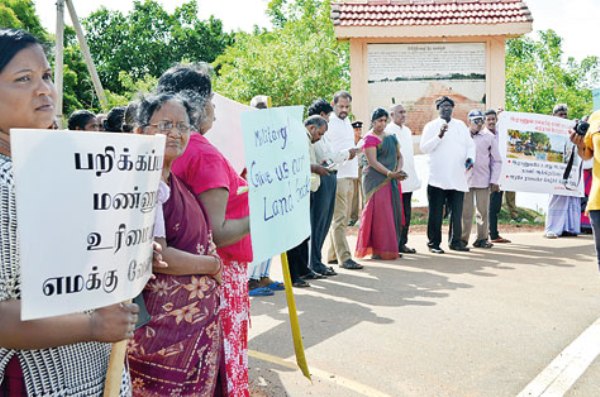வடக்கிலுள்ள தனியார் நிலங்களைக் கையகப்படுத்தும் சிறிலங்கா அரசாங்கத்தின் நடவடிக்கை தமிழ் மக்கள் மத்தியில் எதிர்ப்பைத் தோற்றுவித்துள்ளது. தனியார் நிலங்களைக் கையகப்படுத்துவதன் மூலம் சிறிலங்கா அரசாங்கமானது அனைத்துலக சமூகத்தைத் தவறாக வழிநடத்துவதாகவும் தமிழ் மக்கள் விசனம் தெரிவிக்கின்றனர்.