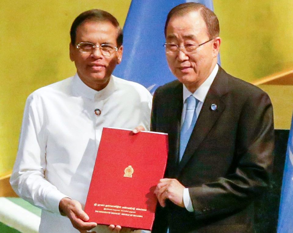 பாரிஸ் உடன்பாட்டில் இணையும் உறுதிப்பத்திரத்தை பான் கீ மூனிடம் கையளித்தார் சிறிலங்கா அதிபர்