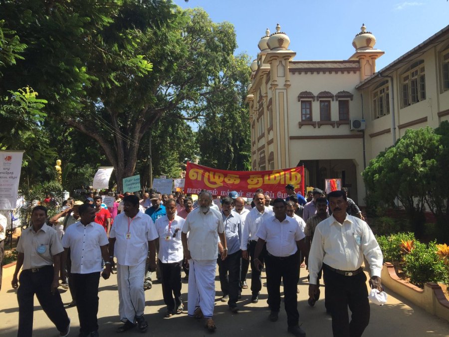 யாழ். பல்கலைக்கழக முன்றிலில், கொடியை அசைத்து, முதலமைச்சர் சி.வி.விக்னேஸ்வரன் பேரணியை ஆரம்பித்து வைத்தார். அதையடுத்து. முதலமைச்சரும், வடக்கு மாகாண அமைச்சர்கள் மற்றும் உறுப்பினர்களும் பேரணியில் பங்கேற்றனர்.