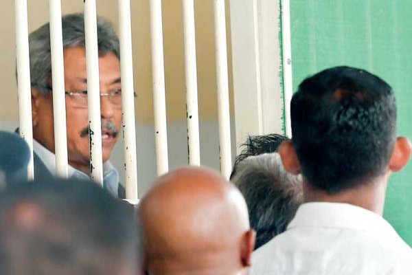 அவன்கார்ட் பாதுகாப்பு நிறுவன வழக்கில் குற்றம்சாட்டப்பட்டுள்ள சிறிலங்காவின் முன்னாள் பாதுகாப்புச் செயலர் கோத்தாபய ராஜபக்ச நேற்று, நீதிமன்றக் காவல் கூண்டுக்குள் சிறிது நேரம் அடைத்து வைக்கப்பட்டார்.