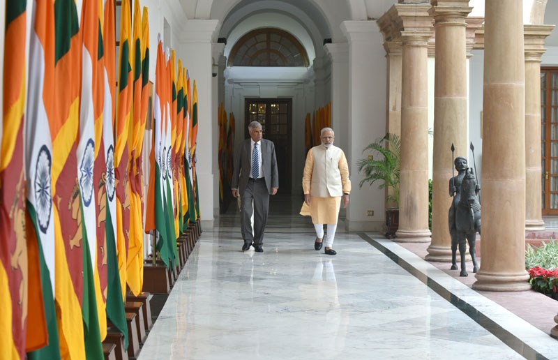 இந்தியாவுக்கு மூன்று நாள் அதிகாரபூர்வ பயணத்தை மேற்கொண்டுள்ள சிறிலங்கா பிரதமர் ரணில் விக்கிரமசிங்க, இந்தியப் பிரதமர் நரேந்திர மோடியைச் சந்தித்துப் பேச்சு நடத்தினார்.
