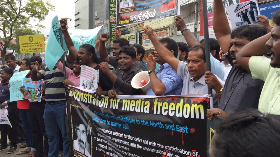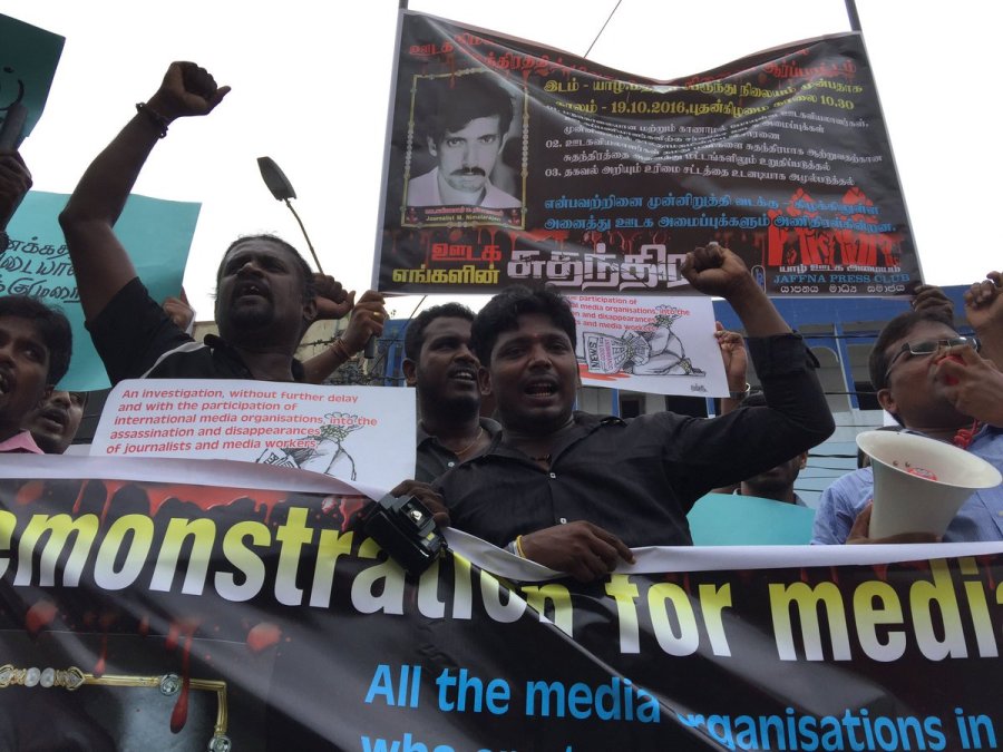 இன்று காலை 10.30 மணியளவில் யாழ். மத்திய பேருந்து நிலையம் முன்பாக ஒன்று கூடிய ஊடகவியலாளர்கள் மற்றும் பிரமுகர்கள், பொதுமக்கள், இந்தப் போராட்டத்தில் பங்கேற்றனர்.